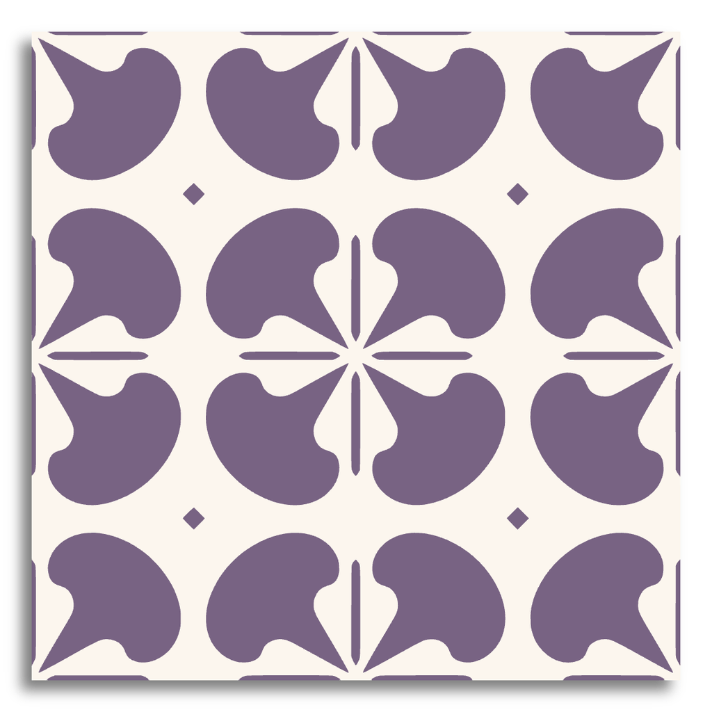 This decor tile showcases a classic encaustic style with a symmetrical pattern of abstract, organic shapes. The design is rendered in a muted blue-gray, elegantly set against a soft white backdrop. The intricate yet subtle arrangement provides a timeless aesthetic, blending seamlessly with both modern and traditional interiors. The neutral color palette enhances its adaptability, making it a perfect choice for various design preferences.