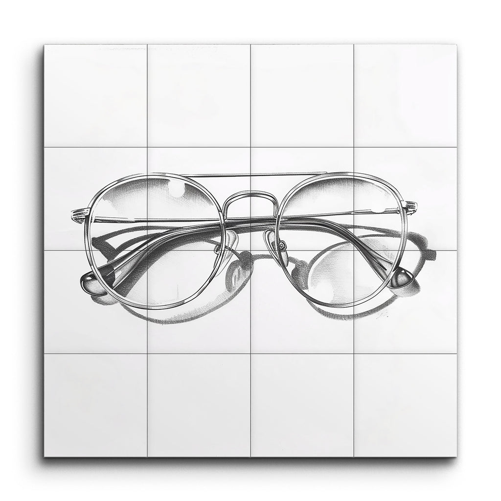 Tauchen Sie Ihren Raum in den fesselnden Realismus dieses fotorealistischen Fliesenwandbildes ein, das eine exquisit detaillierte Zeichnung eines Brillenpaares zeigt. Jedes Element des Metallrahmens, von den Scharnieren bis zu den Nasenpads, ist akribisch dargestellt und erzeugt eine beeindruckende dreidimensionale Illusion. Die subtilen Verläufe und Lichtreflexionen der Gläser tragen zur lebensechten Qualität bei, während die gekonnt geworfenen Schatten die Tiefe verstärken. Dieses Wandbild verwandelt jeden Raum in eine Galerie filigraner Kunstfertigkeit und lässt die Brille fast greifbar erscheinen.