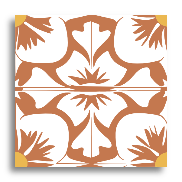 Ce carreau décoratif présente un design symétrique inspiré par des motifs traditionnels mexicains. Son motif combine des formes audacieuses et fluides avec des éléments floraux abstraits, créant un aspect vivant et équilibré. Les teintes bleu-gris doux et jaune atténué contrastent magnifiquement avec un fond blanc, offrant une esthétique harmonieuse mais vibrante. Avec sa répétition géométrique et son symbolisme culturel, ce carreau apporte une sensation organique et dynamique à tout espace.