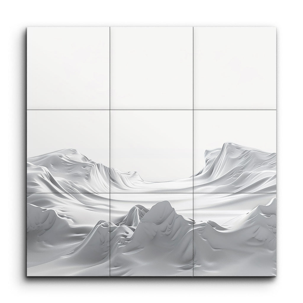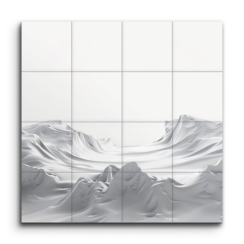 Tauchen Sie ein in die Ruhe mit unserem minimalistischen Fliesenbild, das eine abstrakte Darstellung einer friedlichen Berglandschaft zeigt. Das glatte, monochrome Terrain ist mit fließenden Linien und sanften Kurven gestaltet, die ein Gefühl von Ruhe und Einfachheit hervorrufen. Die weichen Gipfel und Täler, verstärkt durch subtile Schattierungen, schaffen Tiefe und Dimension, während sie eine klare, moderne Ästhetik bewahren. Perfekt, um jedem Raum einen Hauch von gelassener Eleganz zu verleihen, betont dieses Mosaik Form und Textur über aufwendige Details.
