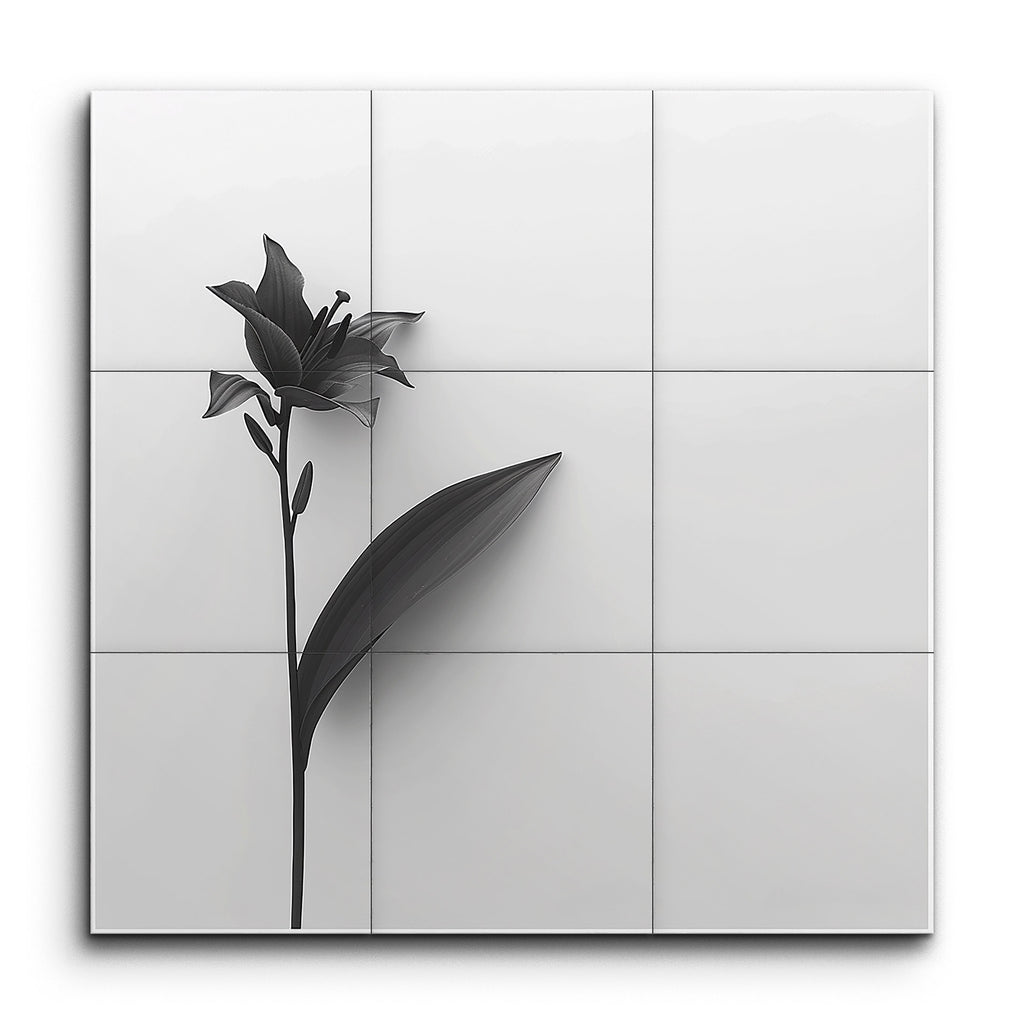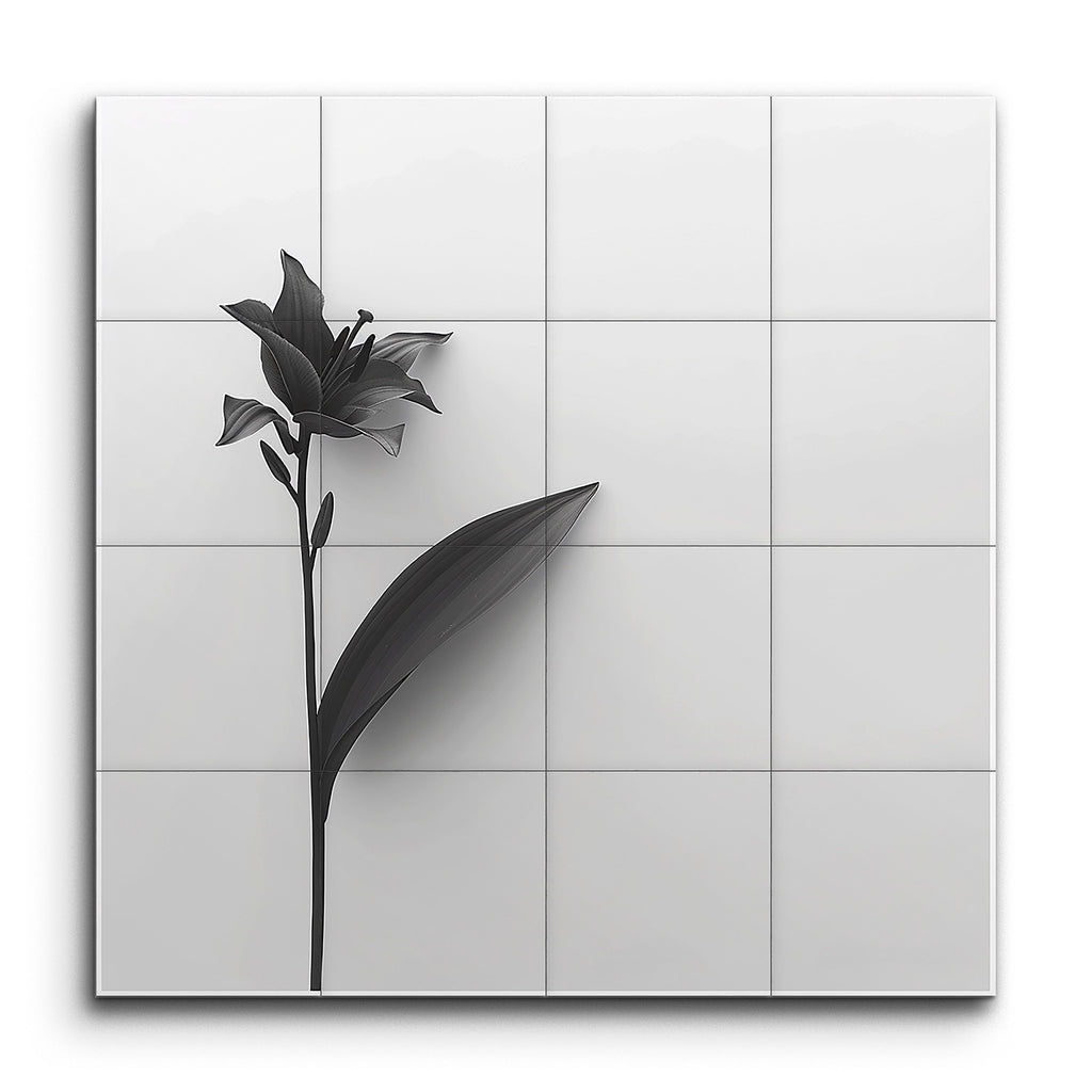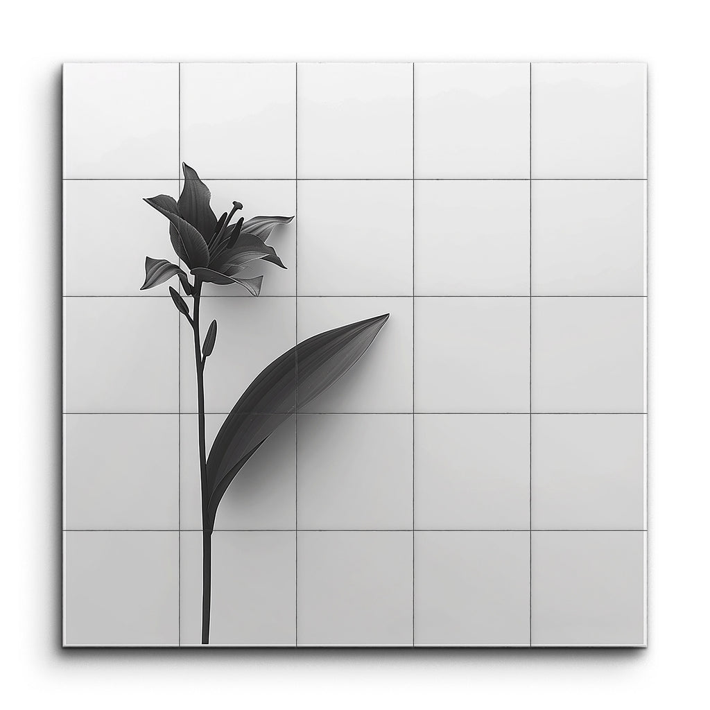 Erheben Sie Ihren Raum mit diesem minimalistischen Fliesenbild, das eine Graustufendarstellung einer Lilie zeigt. Die asymmetrische Positionierung und das sanfte Neigen der Blume schaffen eine dynamische, aber dennoch ruhige Komposition. Zarte Blütenblätter, ein schlanker Stiel und anmutig geschwungene Blätter tragen zu seiner eleganten Schlichtheit bei. Die detaillierte Darstellung von Staubblättern und Stempel verstärkt seine lebensechte Qualität. Klare Linien und subtile Schatten verleihen Tiefe und Raffinesse, wodurch dieses Stück zu einer zeitlosen Ergänzung jeder Umgebung wird.