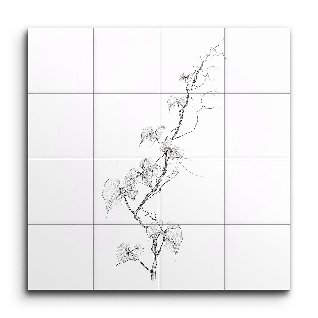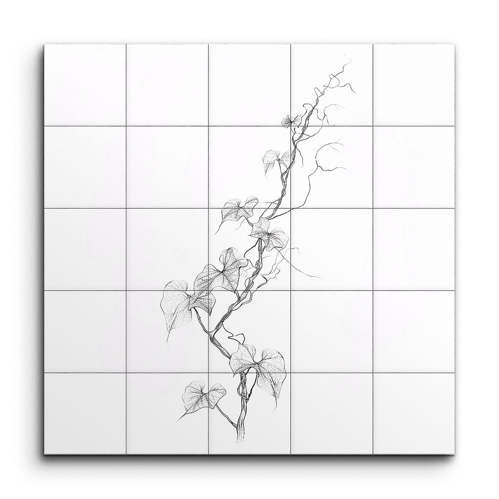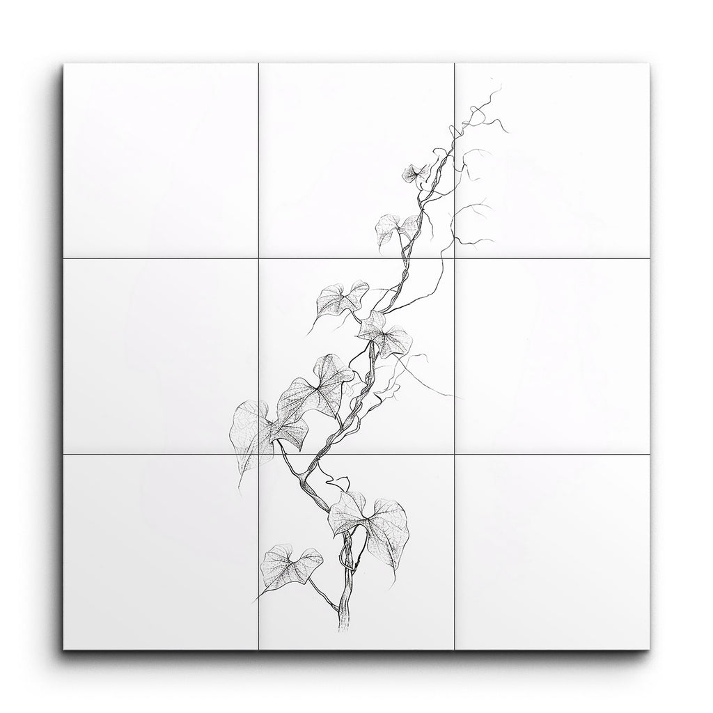 Erheben Sie Ihren Raum mit diesem exquisiten Fliesenbild, das eine zarte, minimalistische Illustration einer Ranke mit herzförmigen Blättern zeigt. Die Ranke windet sich organisch und vermittelt ein Gefühl von natürlicher Bewegung und Eleganz. Feinste Linien stellen die Adern und die Textur jedes Blattes dar und zeigen die raffinierte Schönheit und Präzision botanischer Illustrationen. Dieses hochdetaillierte Kunstwerk fängt die Essenz von Natur, Einfachheit und Eleganz ein und macht es zu einer zeitlosen Ergänzung für jedes Ambiente.