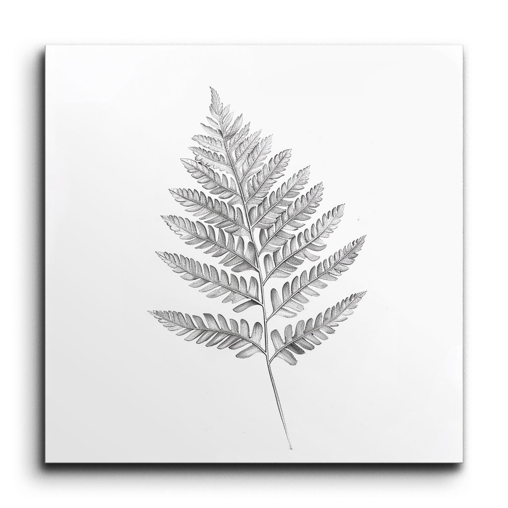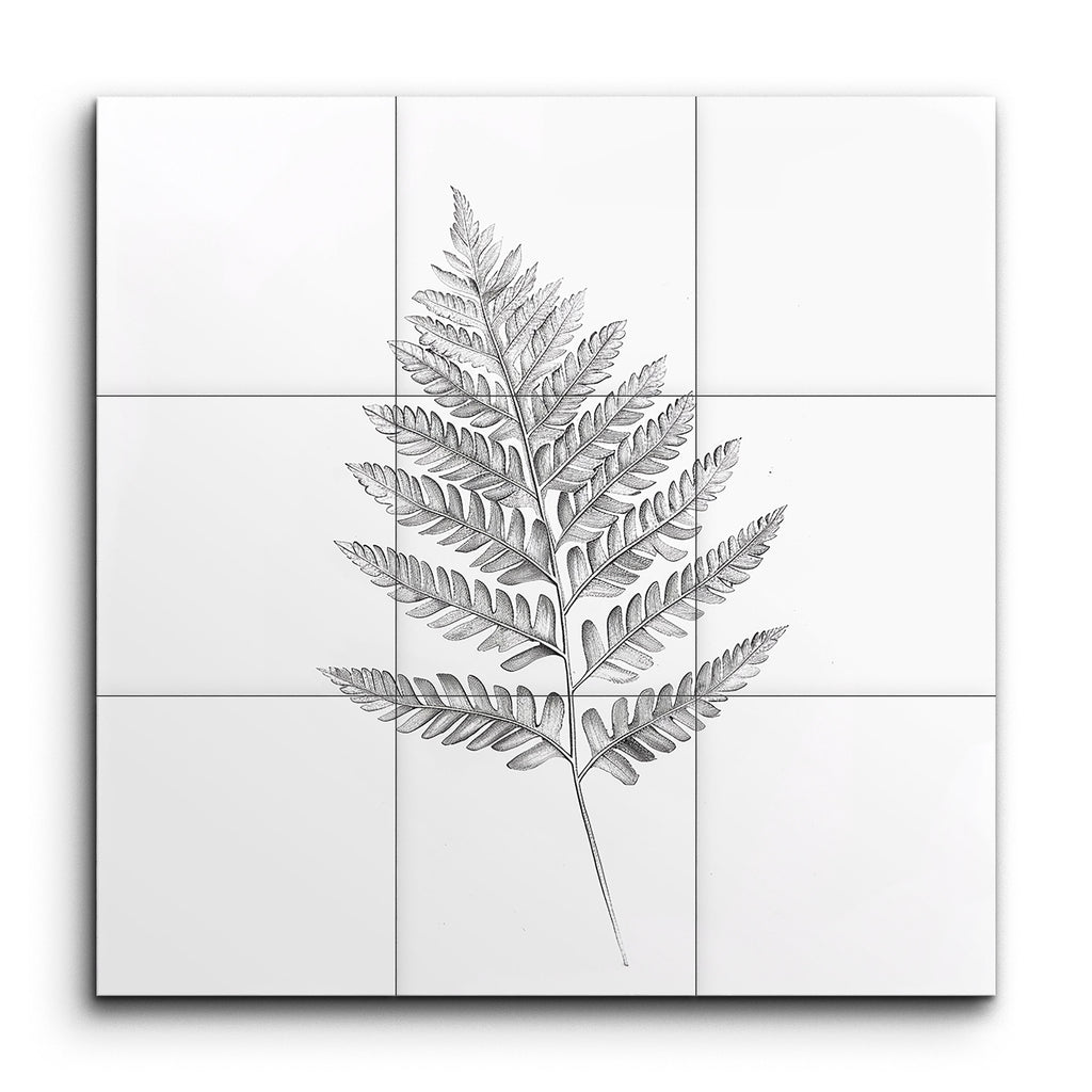 Verwandeln Sie Ihren Raum mit diesem faszinierenden Fliesenbild, das eine äußerst realistische Darstellung eines Farnblattes zeigt. Die filigranen Details jedes Blättchens, von zarten Adern bis hin zu natürlichen Krümmungen, sind akribisch erfasst und bieten ein dreidimensionales Erscheinungsbild. Feine, klare Linien betonen die natürliche Eleganz und Symmetrie des Farns, während subtile Schattierungen seine Komplexität hervorheben. Dieses Kunstwerk lädt Sie ein, die ruhige Schönheit und die komplexe Struktur der Natur zu schätzen, und macht es zu einem atemberaubenden Blickfang für jeden Raum.