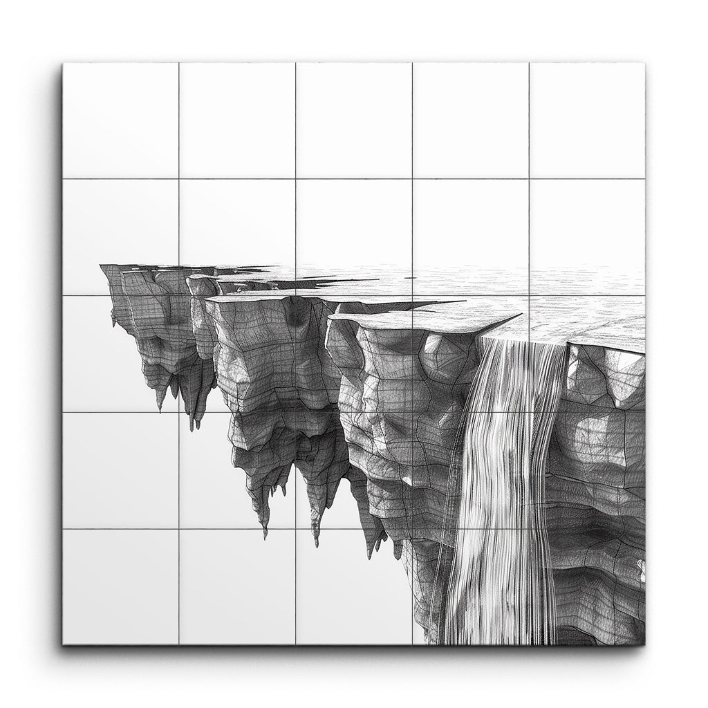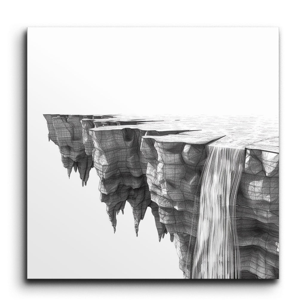 Verwandeln Sie Ihren Raum mit diesem faszinierenden Fliesenbild, das eine surreale und minimalistische Darstellung einer Klippe mit einem herabstürzenden Wasserfall zeigt. Der detaillierte, topografische Stil der Klippe präsentiert komplexe Linien und Schattierungen, die eine strukturierte, dreidimensionale Erscheinung erzeugen. Gezackte und unregelmäßige Kanten rufen natürliche Erosion hervor, während der glatte, fließende Wasserfall einen auffälligen Kontrast bildet. Die monochromen Töne betonen Form und Struktur und machen dieses Kunstwerk zu einem auffälligen Blickfang in jeder Umgebung.