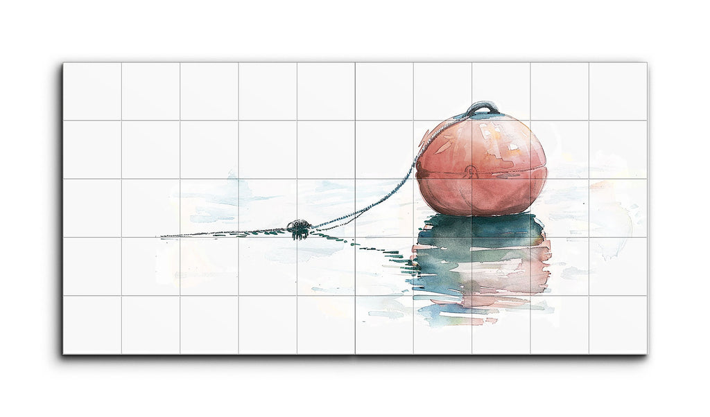 Dieses Diptychon-Fliesenbild zeigt eine verwitterte Boje, deren verblasstes Rot oder Orange auf jahrelange Witterungseinflüsse hinweist. Über einer reflektierenden Wasseroberfläche schwebend, ist die Boje im Aquarellstil dargestellt, mit durchscheinenden, flüssigen Strichen, die weiche Kanten und gedämpfte Farben miteinander verschmelzen. Andeutungen von Blau, Rosa und Orange schaffen eine ruhige, melancholische Atmosphäre. Die Komposition, mit der Boje außerhalb des Zentrums ausbalanciert, ruft Einsamkeit und Ruhe hervor und lädt zur Betrachtung von Isolation, dem Vergehen der Zeit und der Schönheit in der Einfachheit ein.